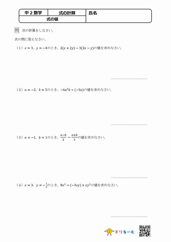 式の計算(式の値)式の計算 2025.05.26 お気に入りに追加 0このような問題はいきなり式の文字に代入するのではなく、文字式自体を先に計算して文字を減らし、そこに代入するようにしましょう。 お気に入りに追加 0